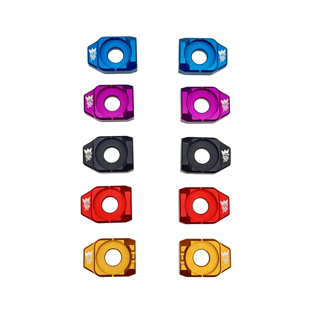 Enhance your Talaria Sting with our custom rear wheel axle blocks, engineered for superior durability and performance. Made from robust aluminum, these axle blocks are designed to endure the most demanding rides while providing steadfast support. Available in a range of anodized colors, you can tailor your bike's look to your personal taste. Manufactured in Europe, our axle blocks meet the highest standards of quality and precision craftsmanship. Boost your bike's performance and aesthetics with our premium custom rear wheel axle blocks.