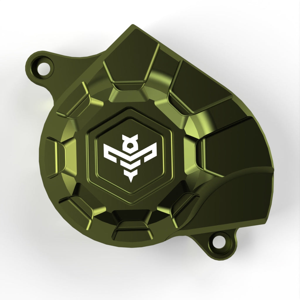 Aluminum Motor Cover for Surron Light Bee - Elevate your ride with our premium motor cover, meticulously engineered for the Surron Light Bee. This versatile cover is compatible with both belt and chain drive systems, offering flexibility to suit your riding preferences. Crafted from high-quality aluminum, it’s available in a range of anodized colors, each featuring a distinctive logo design that adds a personalized touch to your bike’s appearance.
